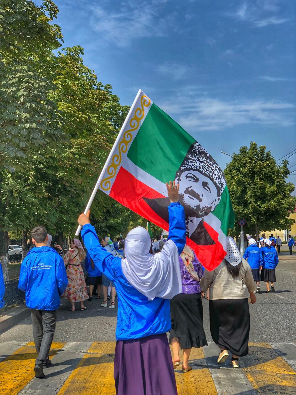 6 сентября активисты ЕДЮО "Юные Кадыровцы" МБОУ "Толстой-Юртовской СОШ1" приняли активное участие в шевствии,  приуроченном ко Дню республики.