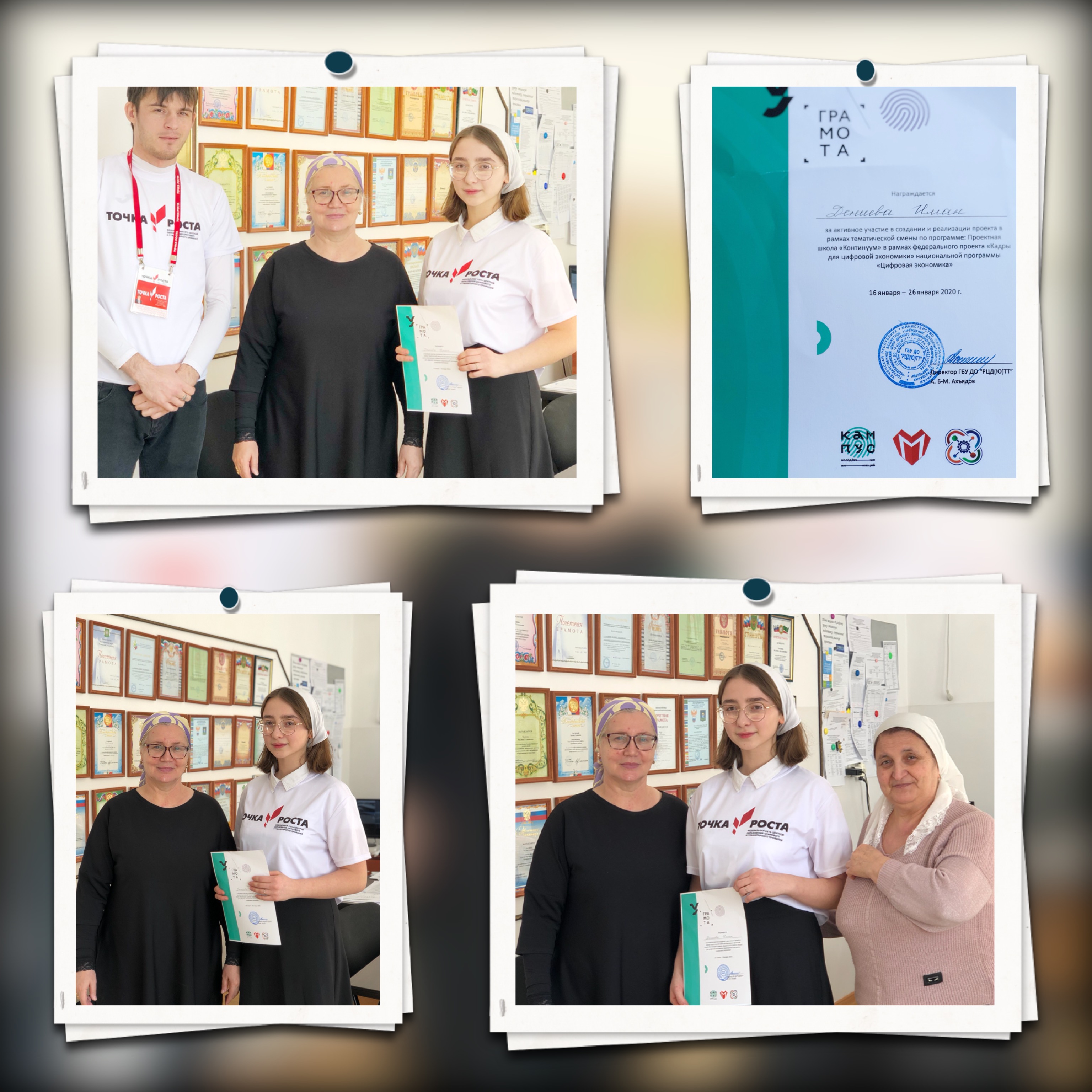 29.01.2020Награждена🕊Дениева Иман за активное участие в создании и реализации проекта в рамках тематической смены по программе: Проектная школа 🏫 «Континуум» в рамках федерального проекта «Кадры для цифровой экономики» национальной программы «Цифровая экономика». 16 января -26 января 2020г.
