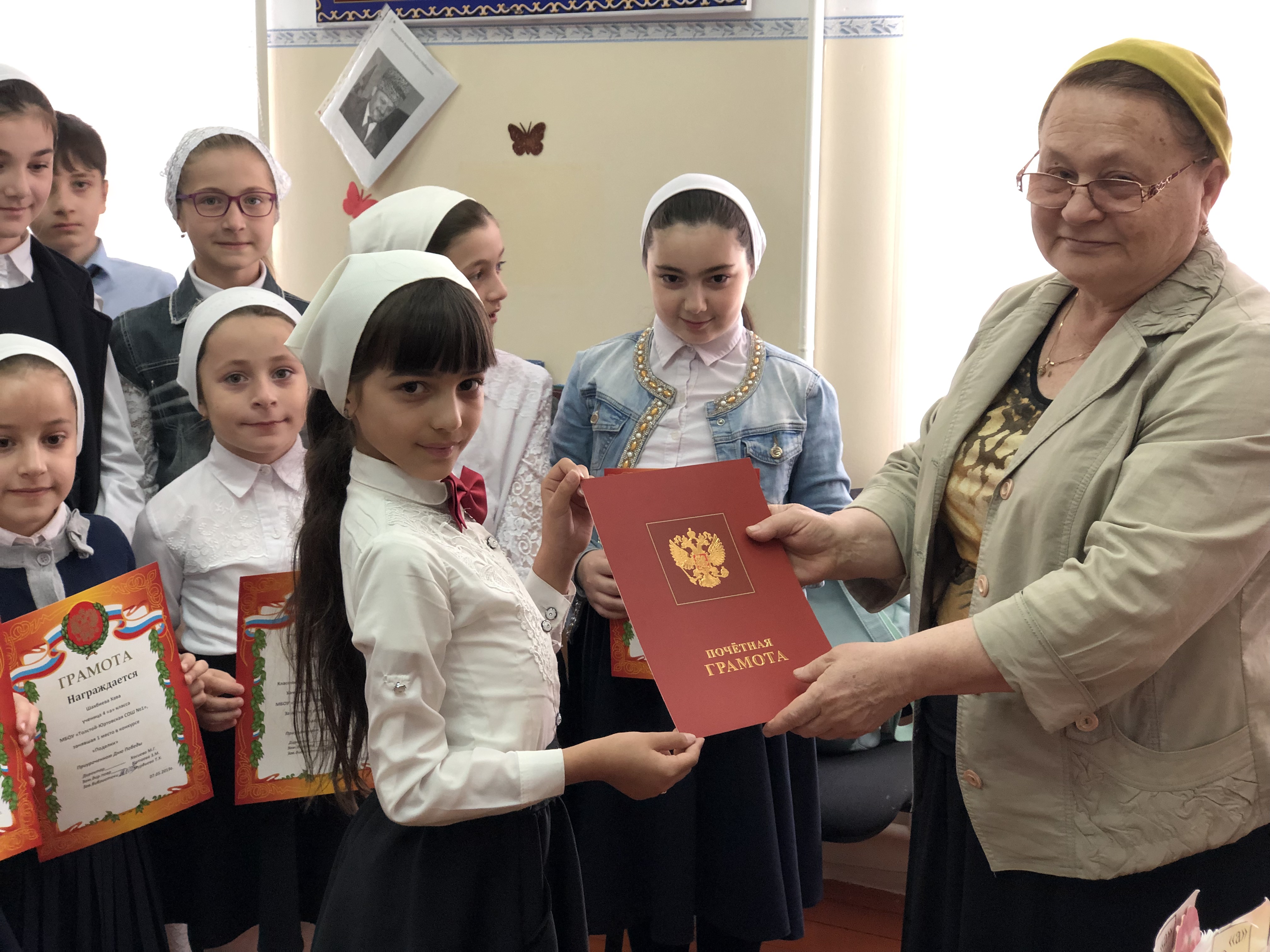 7 мая учащиеся начальной школы и обучающиеся 5-7 классов, под руководством библиотекарей Мурдиевой Т.Х. и Азиевой Т.А., провели выставку поделок и открыток своими руками «9 мая – светлый праздник!».
